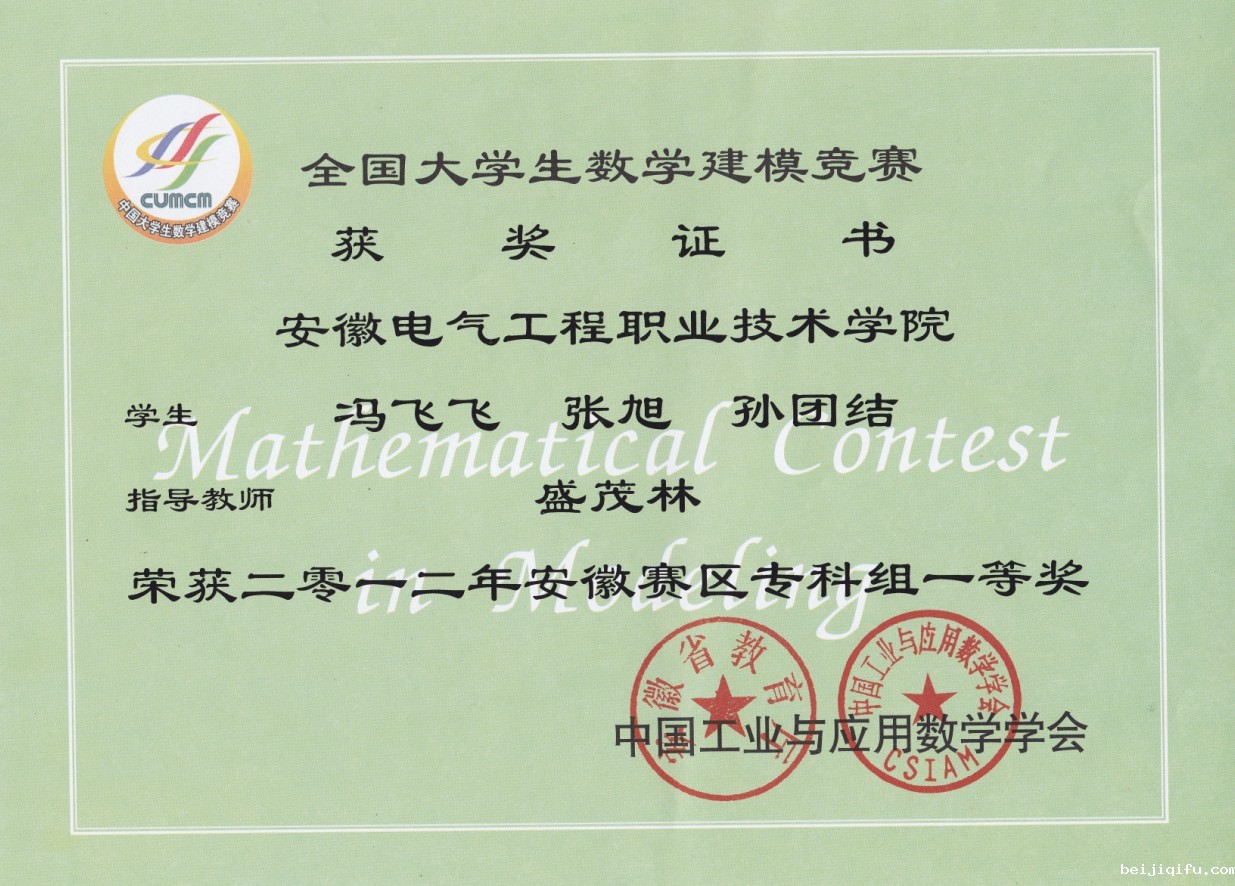 数学教师指导学生参加安徽赛区数学建模比赛