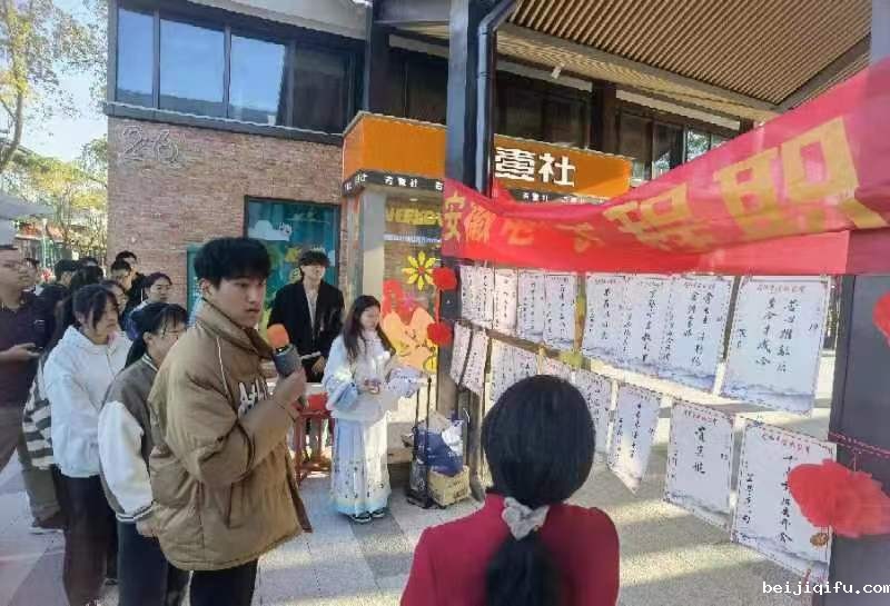 在活动现场,一排排红烛灯笼熠熠生辉,一条条彩色灯谜跃然纸上。随着鼓声的响起,击鼓猜谜开始了。谜面种类繁多,题材五花八门,有字谜、成语、诗词、歇后语、历史名人、合肥古迹、自然现象等,同学们认真分析谜面,不时交流探讨,吸引了大批游客前来参加,偌大的园博小镇挤满了人,当猜出答案时一个个欢呼雀跃、兴奋不已。这种独特的形式,不仅让灯谜活动更加生动有趣,也让在场的每一位观众都能深深感受到传统文化的魅力。