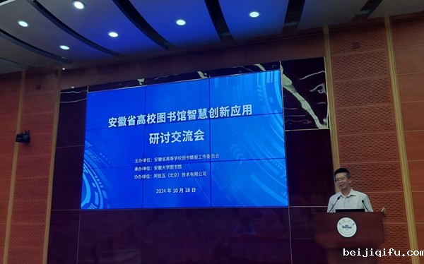 为加强人工智能时代高校图书馆智慧化建设,增进高校馆际交流与合作,凝聚经验,确立品牌,创新服务,助力图书馆高质量发展,2024年10月18日下午在安徽大学磬苑校区文典阁图书馆举办了安徽省高校图书馆智慧创新应用研讨会。本次研讨会由安徽省高等学校图书情报工作委员会主办,安徽大学图书馆承办,阿依瓦(北京)技术有限公司协办。国内图书文献、科学技术情报及人工智能领域专家学者到会做主旨报告,安徽省各高校图书馆馆长、技术部主任及相关工作人员参加会议。